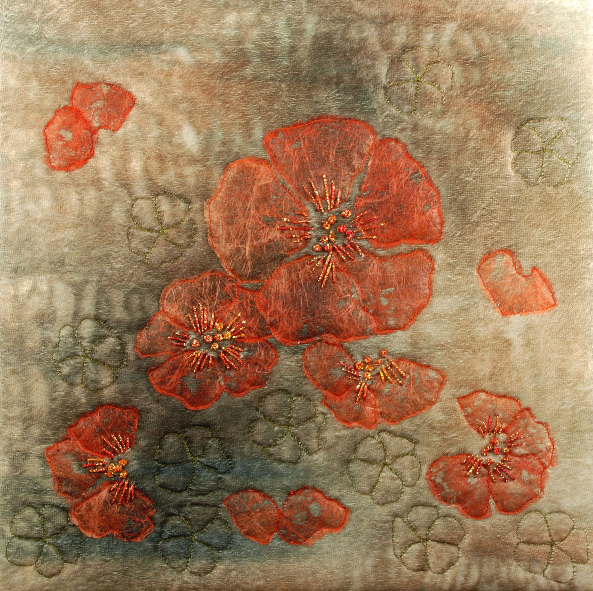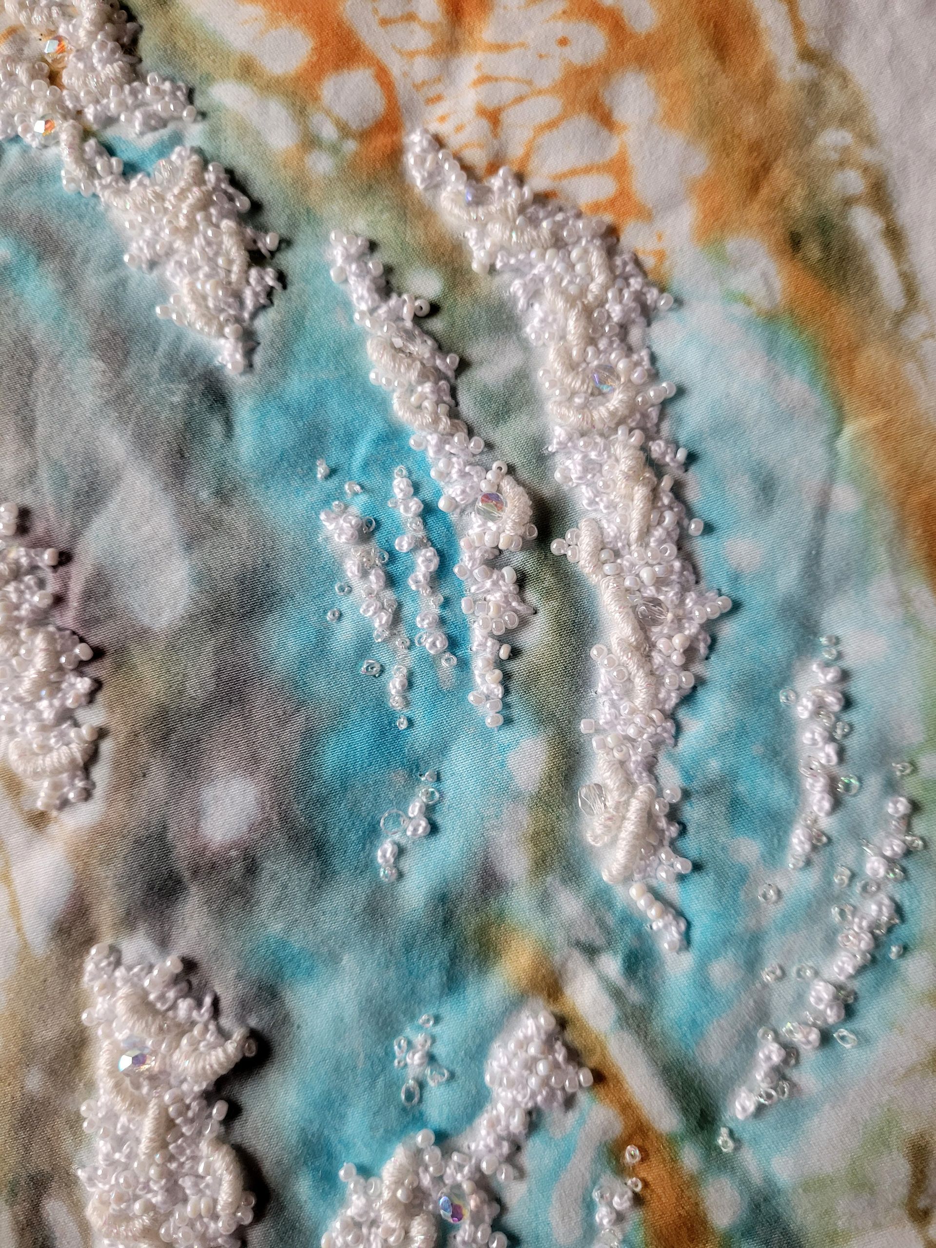 Ich bin eine deutsche Künstlerin und arbeite mit textilen Materialien, Stickerei und Mixed-Media-Techniken. Dabei entstehen vielschichtige Werke, die zwischen Bild und Objekt changieren. Meine Arbeiten erzählen von Wandel, Verletzlichkeit und Widerstandskraft – oft mit einem gesellschaftskritischen oder ökologischen Unterton.